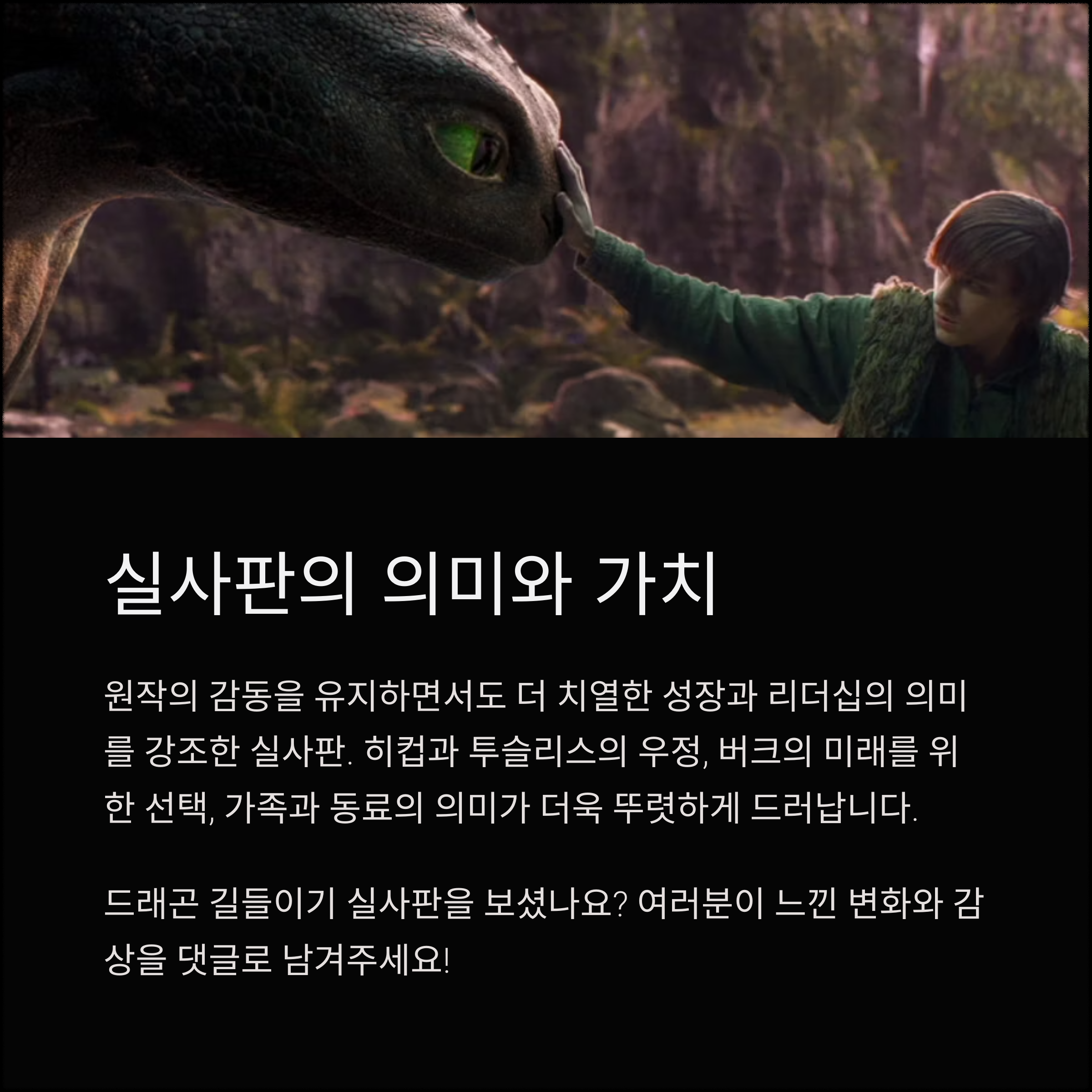 전 세계적으로 큰 사랑을 받은 애니메이션 드래곤 길들이기 시리즈가 실사판으로 재탄생했다