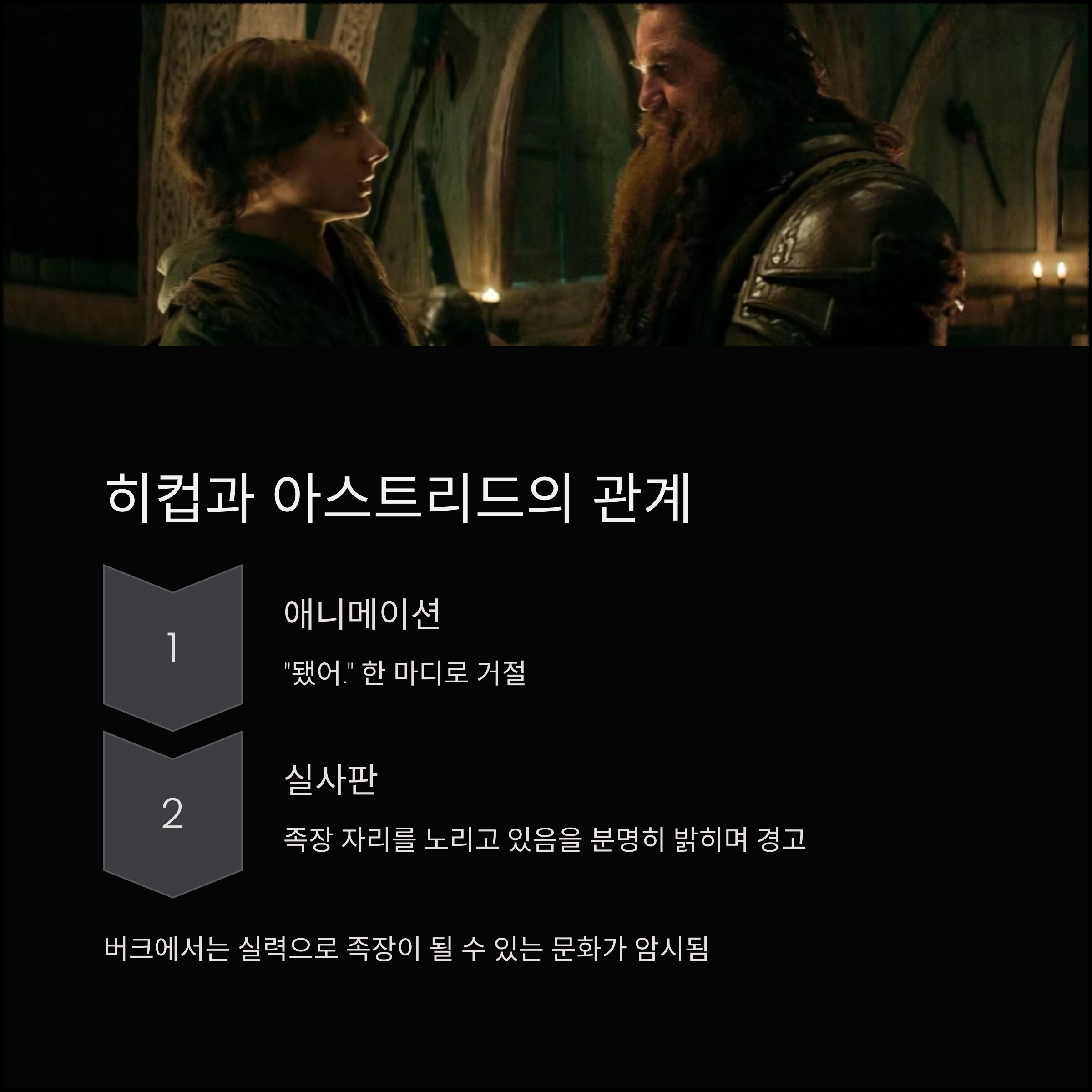 전투 지휘도 히컵에서 아스트리드로 넘어가며 강인한 여성 리더십이 부각된다