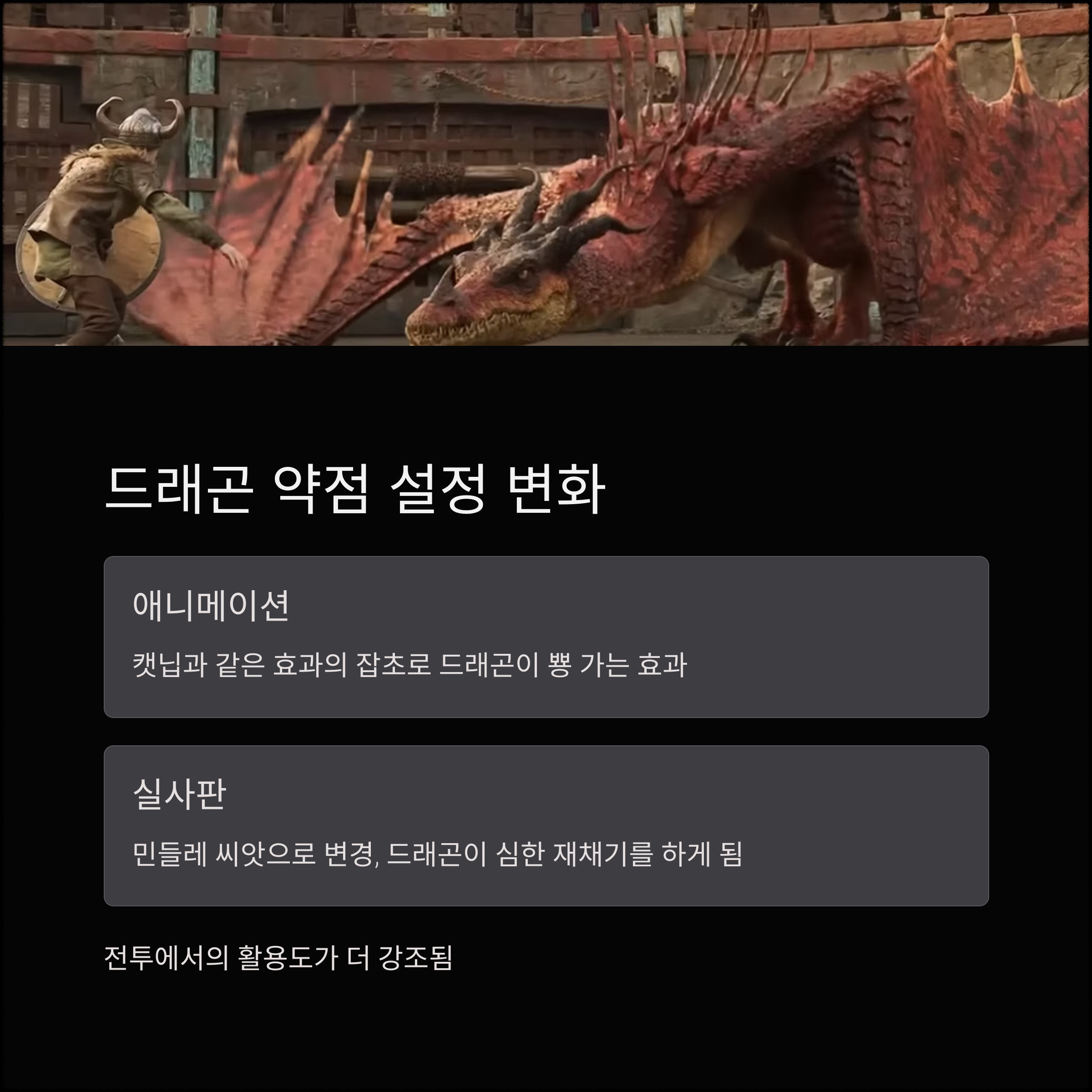 모든 캐릭터가 각자의 드래곤을 길들이는 장면이 추가되어 팀워크가 더 강조된다