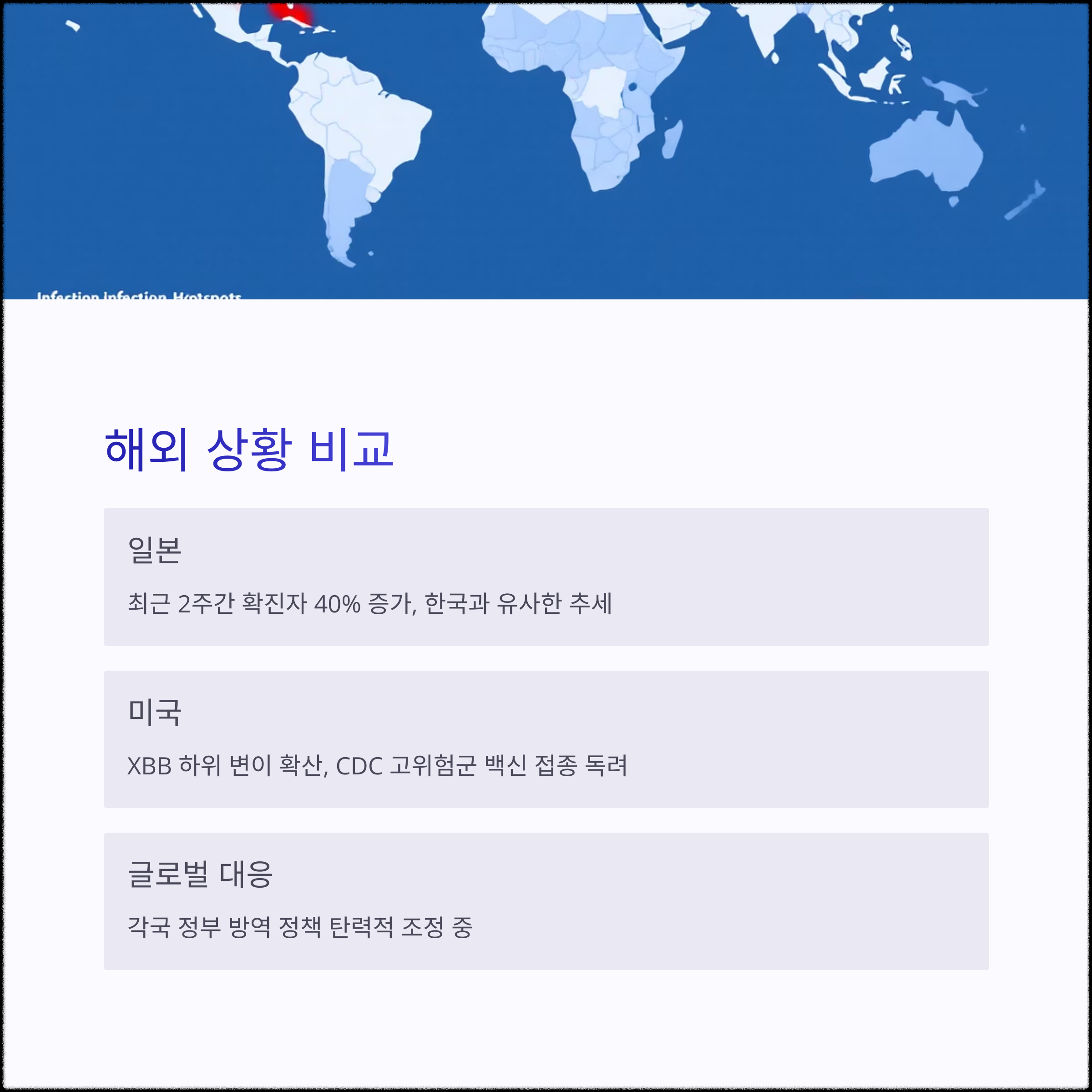 미국과 일본에서도 XBB 하위 변이의 확산으로 인해 확진자가 증가하고 있습니다.