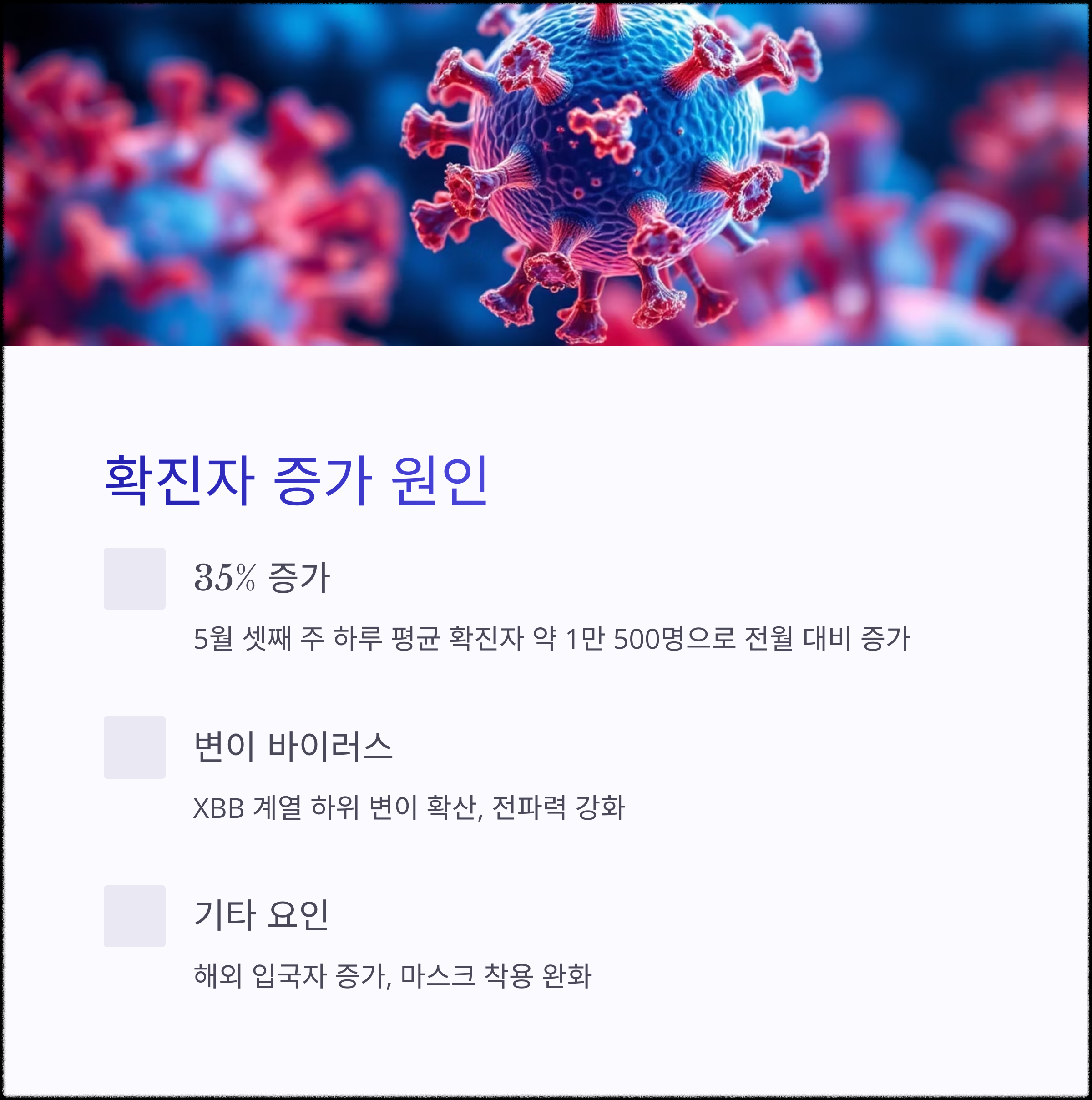 2025년 5월 기준, 국내 코로나19 신규 확진자 수가 다시 증가하고 있습니다.