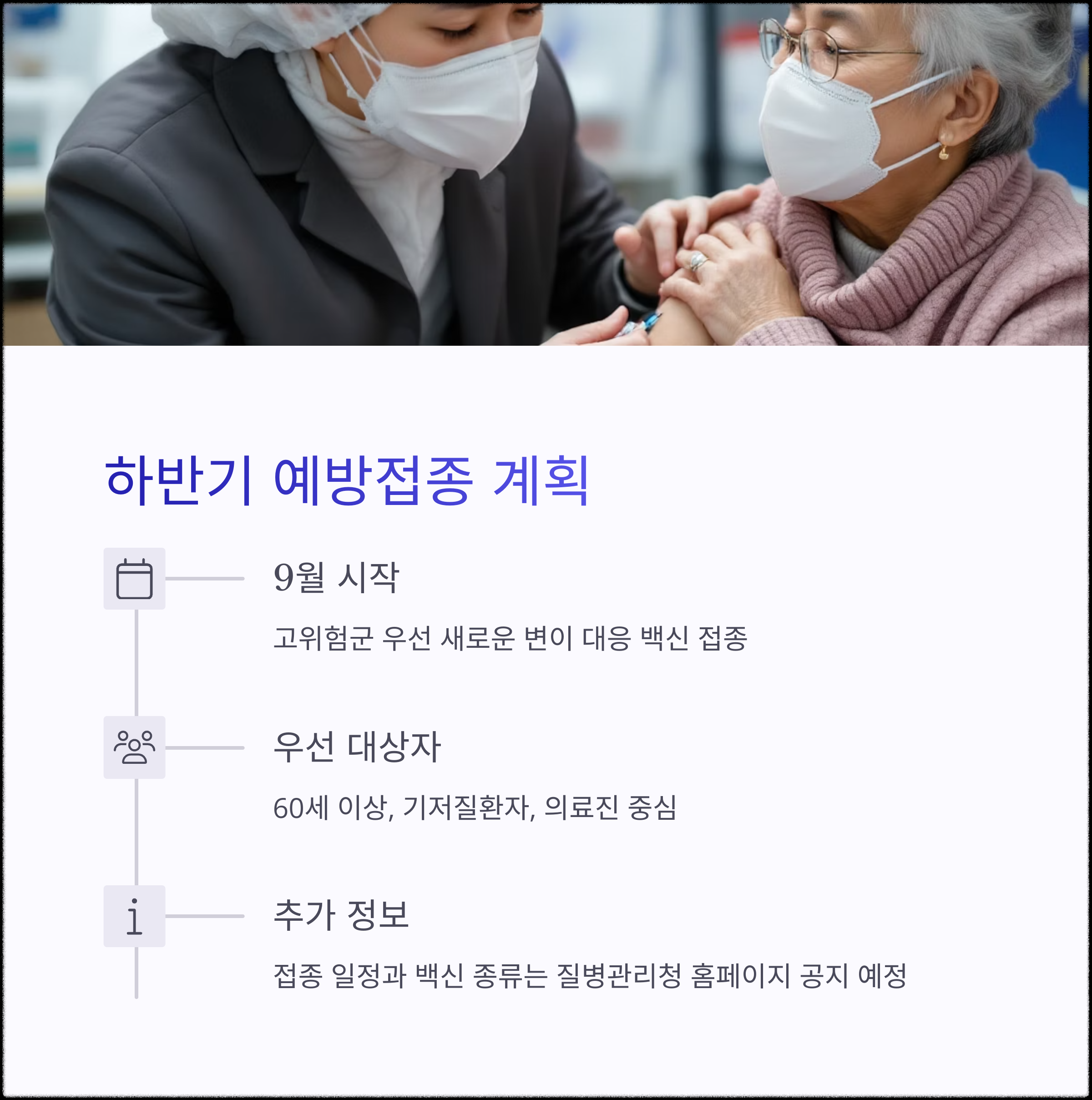 | 예방접종 | 고위험군은 추가 접종 참여 권장 |