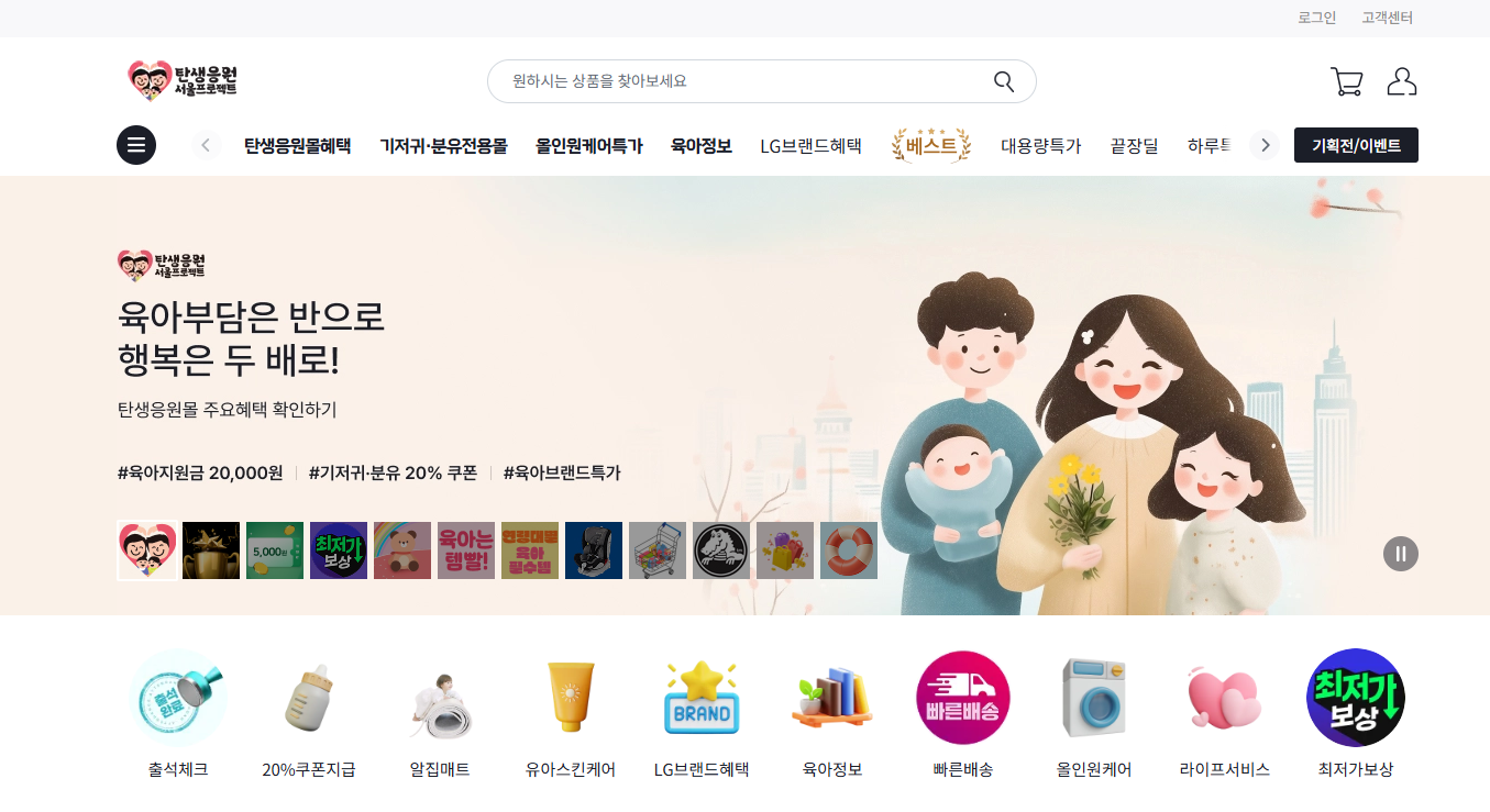 육아 필수품인 기저귀, 분유 등은 가격 상승이 두드러지는 품목입니다. 이를 고려해 서울시는 필수 육아용품을 반값에 구매할 수 있는 ‘탄생응원몰’을 운영 중입니다. 쿠폰까지 제공하며 실질적인 비용 절감을 가능하게 하여 출산에 대한 경제적 부담을 덜고 있습니다.