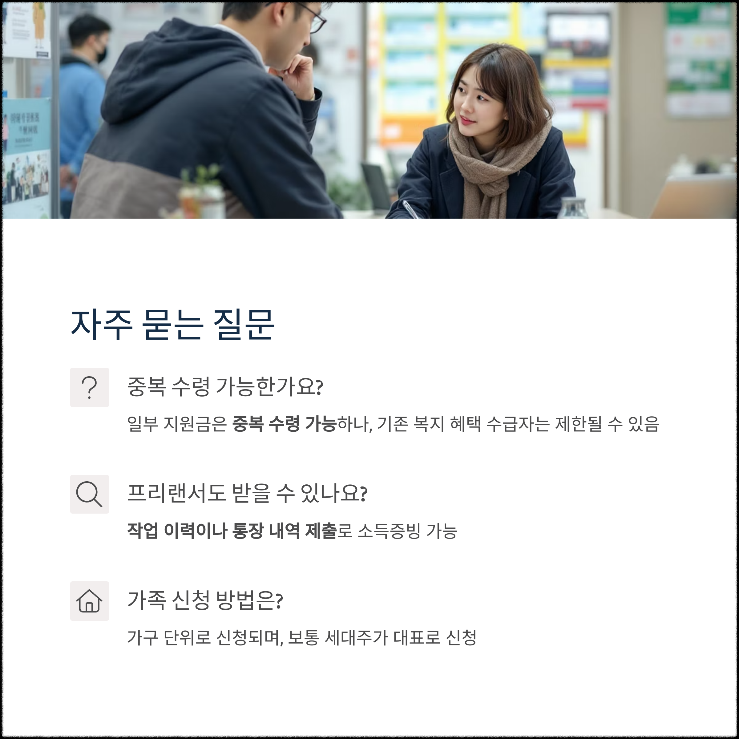 가구 소득 수준, 직업 형태, 거주 지역에 따라 신청 가능한 항목이 달라질 수 있습니다.