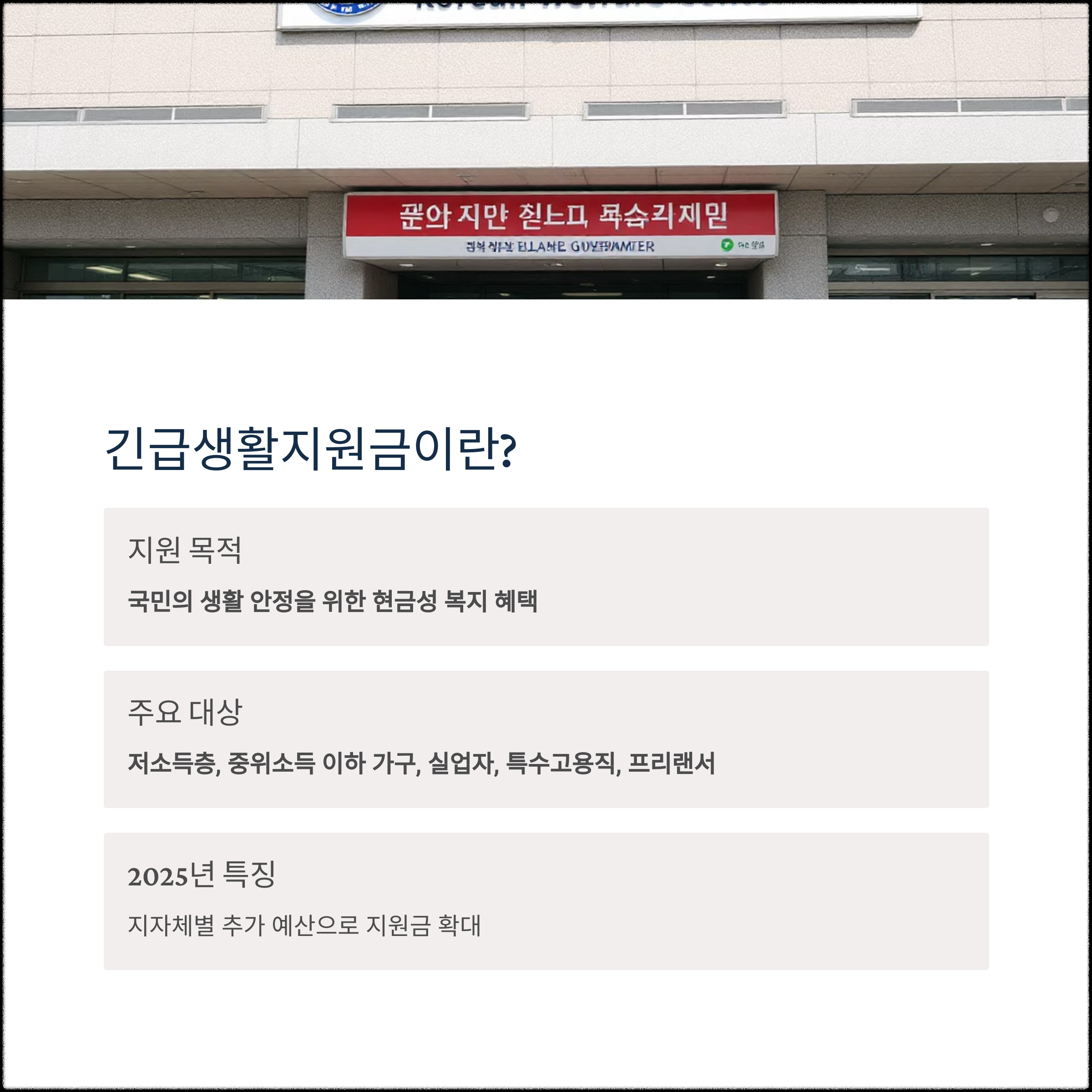 긴급생활지원금은 정부가 일시적으로 국민의 생활 안정을 위해 지급하는 현금성 복지 혜택입니다.