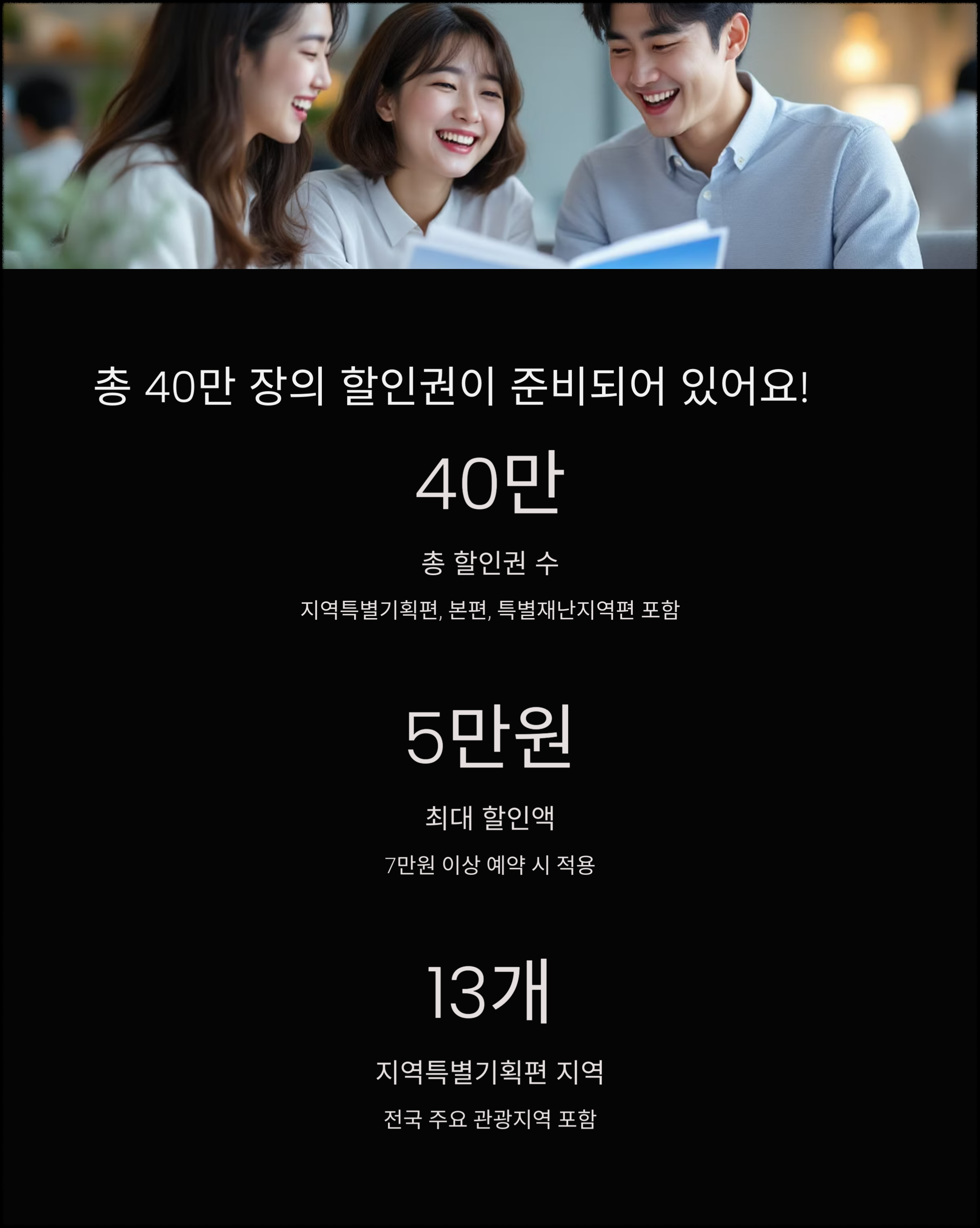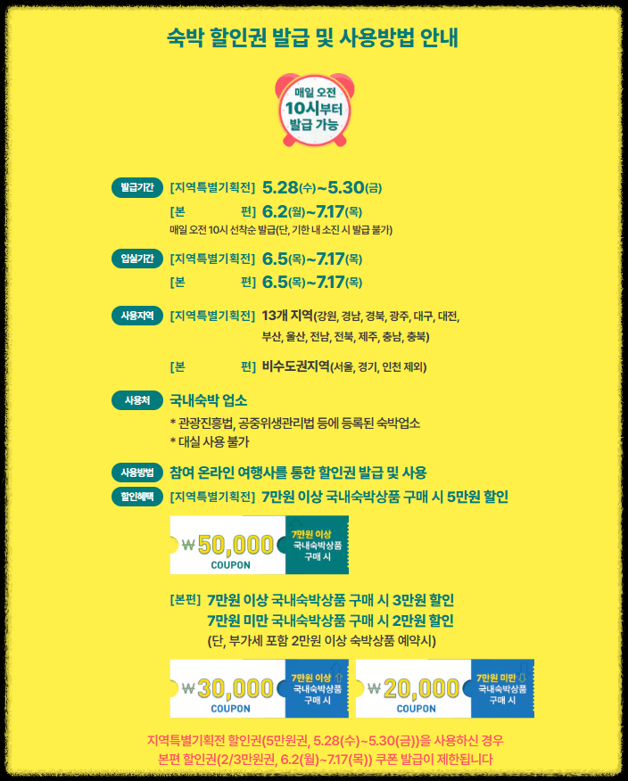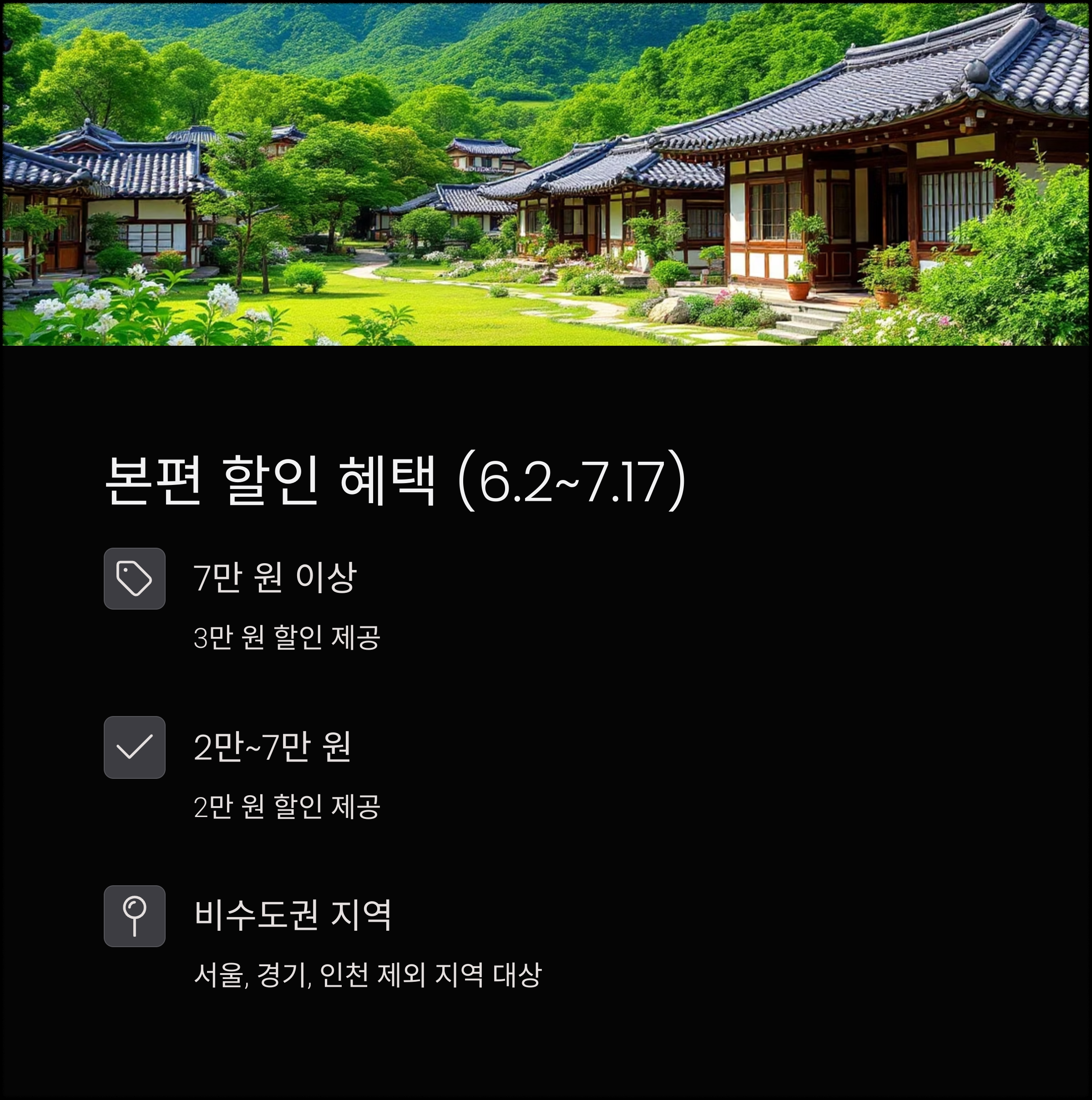 다양한 지역 숙소를 저렴하게 이용할 수 있는 좋은 기회입니다.