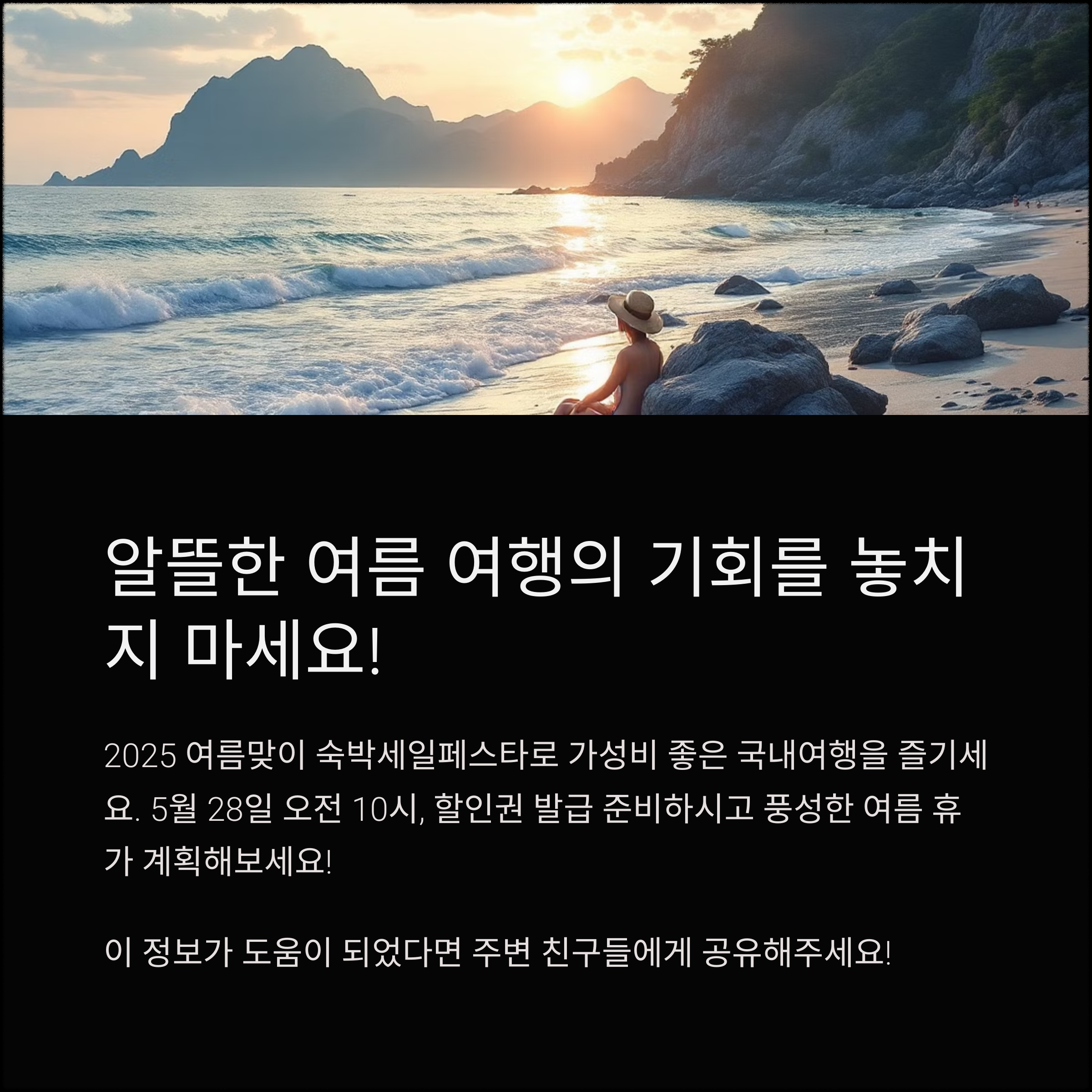 2025년 여름, 문체부와 한국관광공사가 선보이는 숙박 할인 페스타로 똑똑하게 국내 여행 떠나보세요!