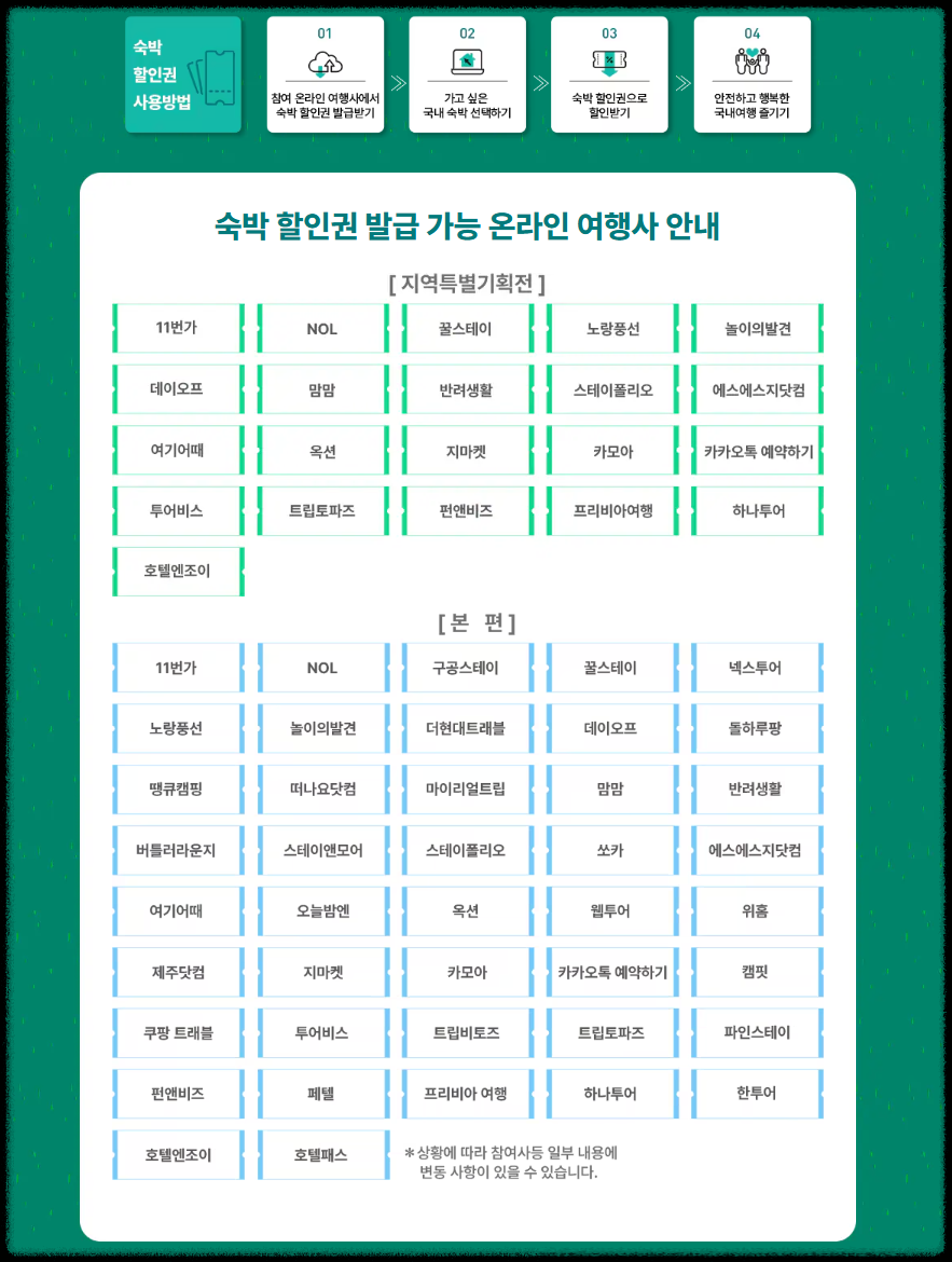 - 참여 온라인 여행사(OTA)에서 할인권 발급