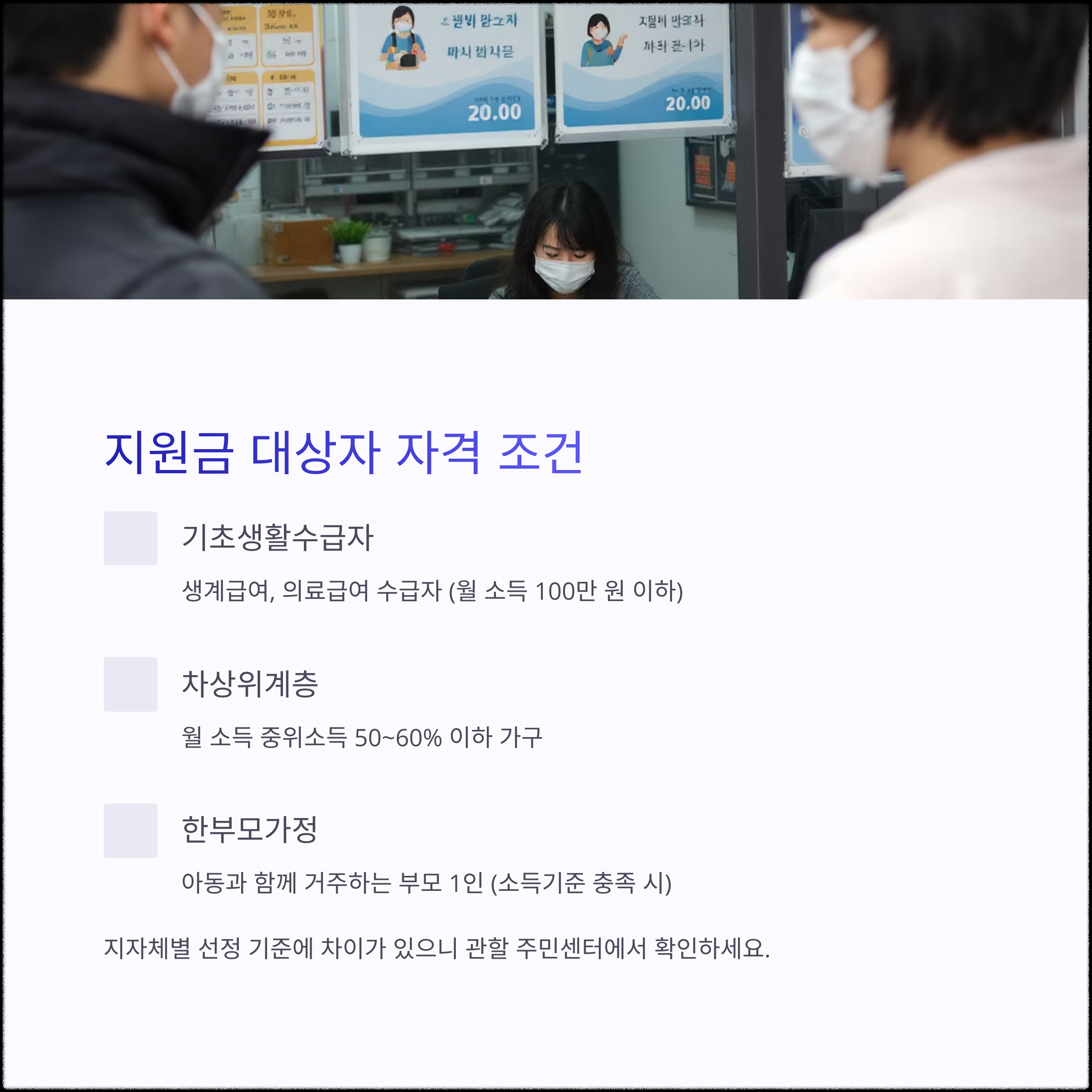 2025년 기준 긴급생활지원금은 기초생활보장 수급자, 차상위계층, 한부모가정 등 저소득층 가구를 대상으로 지급됩니다.
