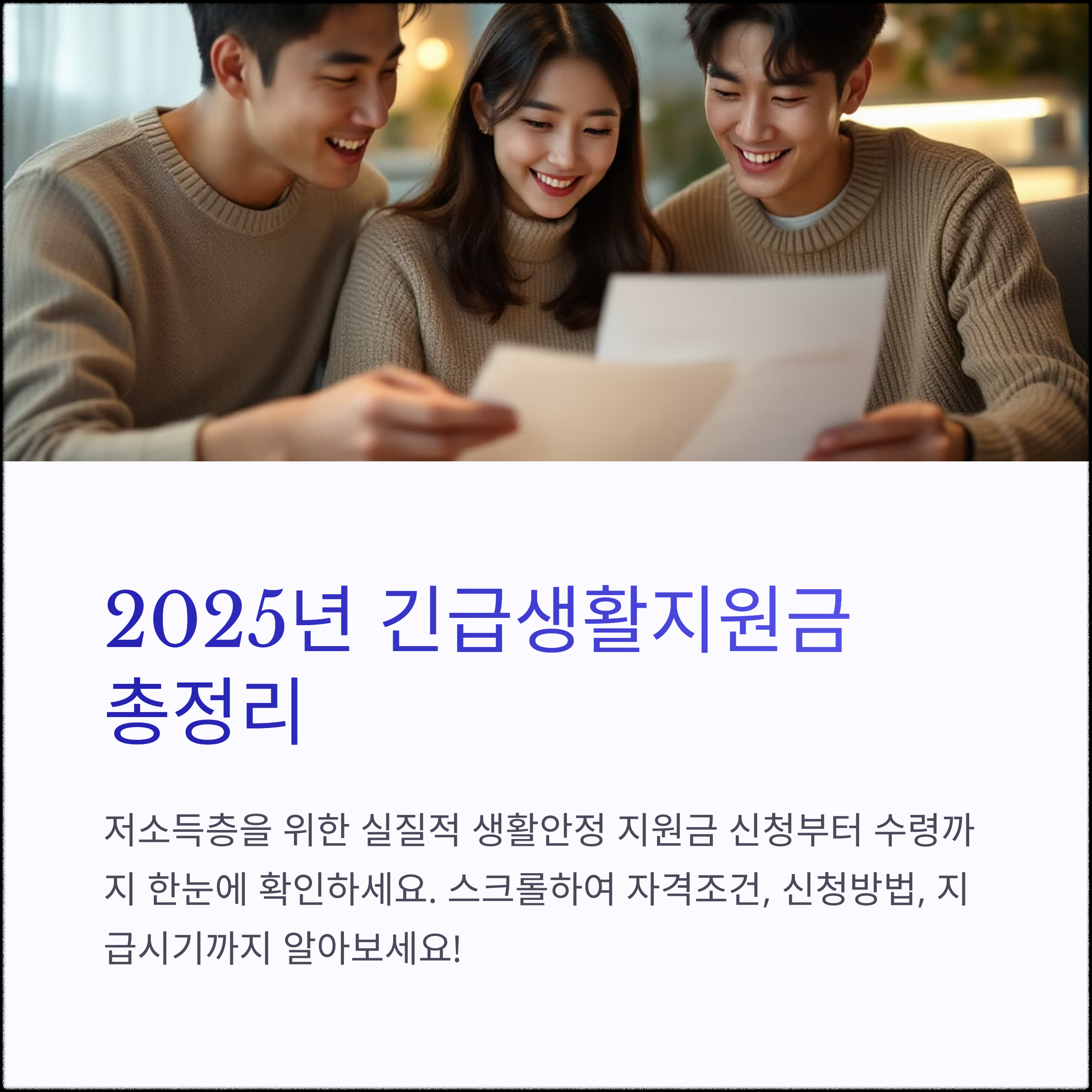 정부는 2025년에도 경제적으로 어려운 저소득층을 위한 긴급생활지원금을 지원하고 있습니다.