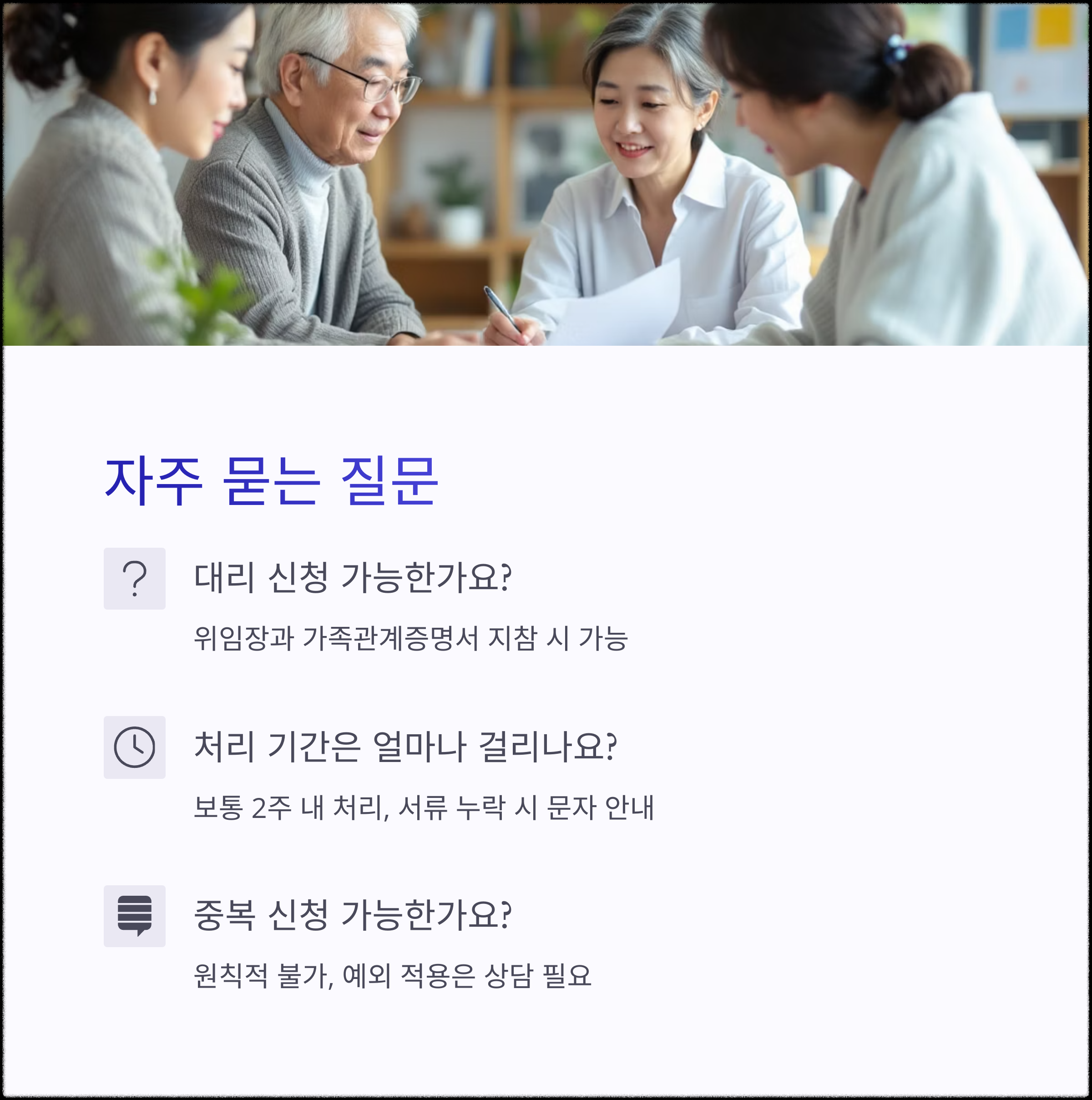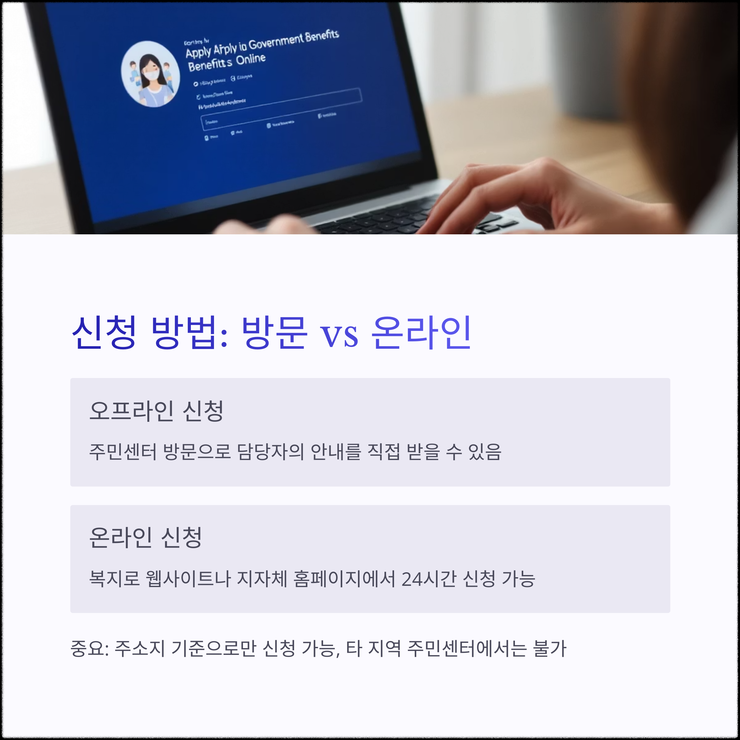디지털에 익숙한 분들은 복지로(www.bokjiro.go.kr) 또는 지자체 복지포털에서 온라인 신청도 가능합니다.