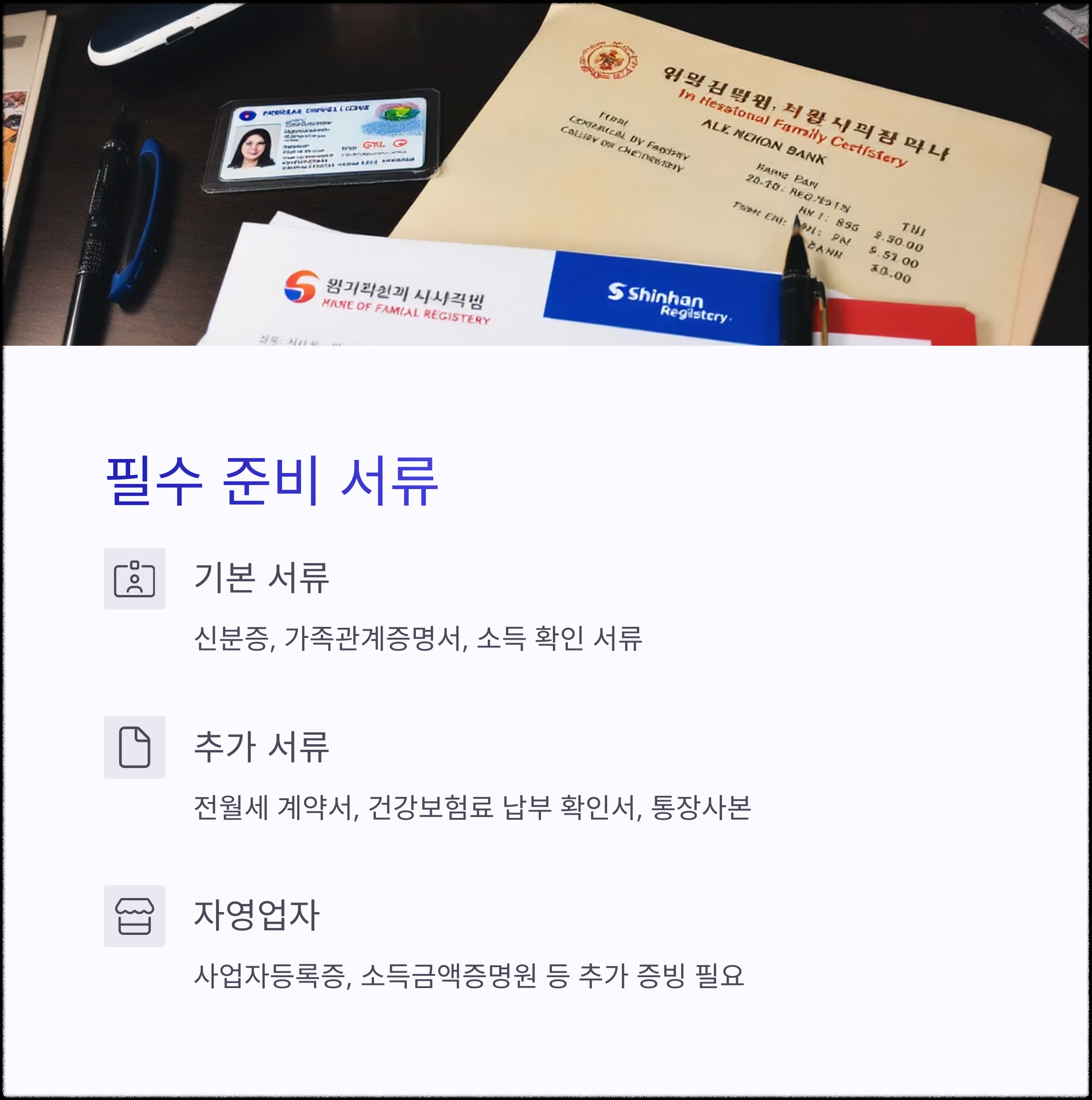 기본적으로는 신분증, 가족관계증명서, 소득 확인 서류가 필요하며,