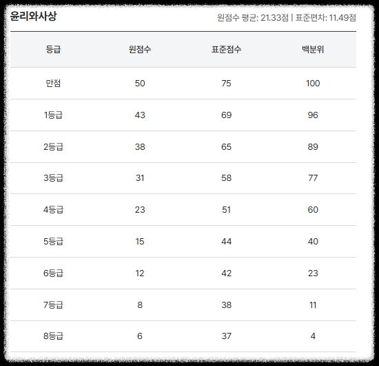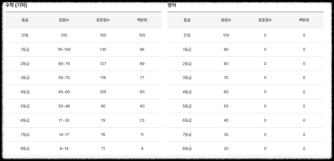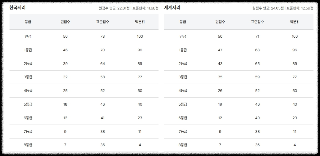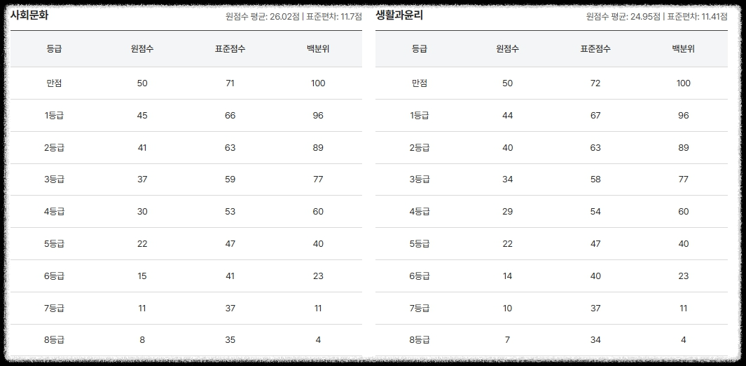 4. 기타 과목별 실제 등급컷 정리표 (2025년 5월 기준)