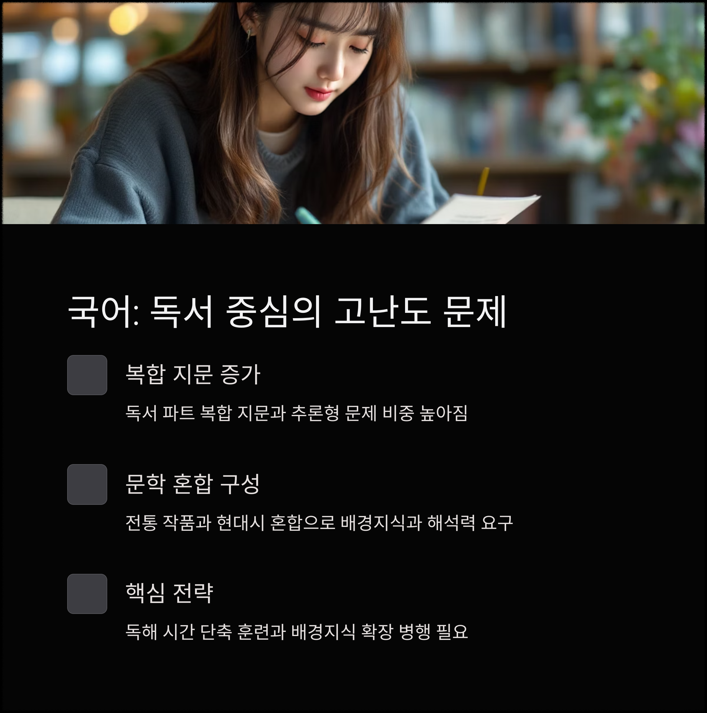 1. 국어 영역: 독서 중심의 고난도 지문으로 변별력 확보