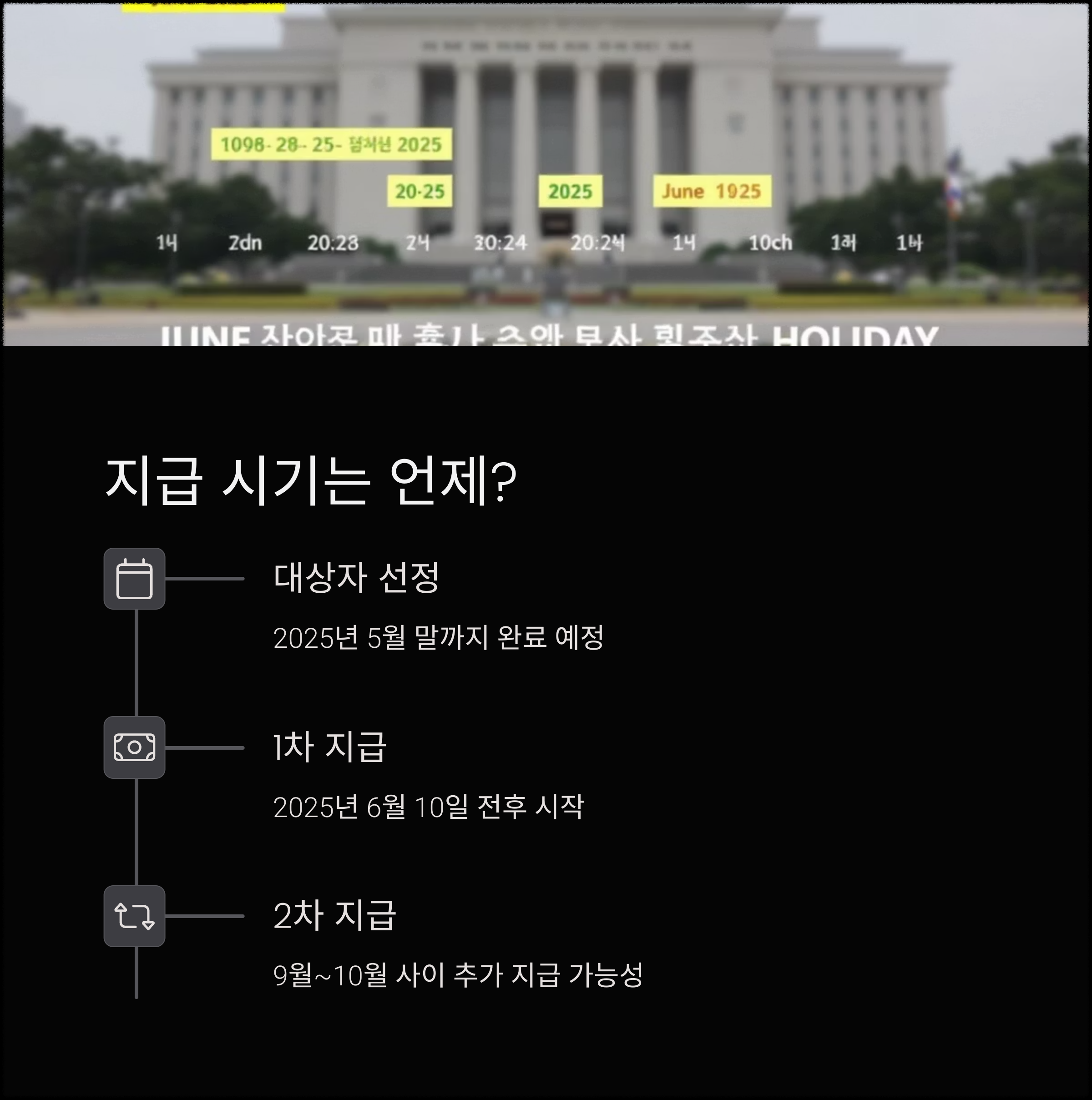 추가적으로 2차 지급이 9월~10월 사이 한 차례 더 있을 수 있다는 가능성도 언급되고 있습니다.