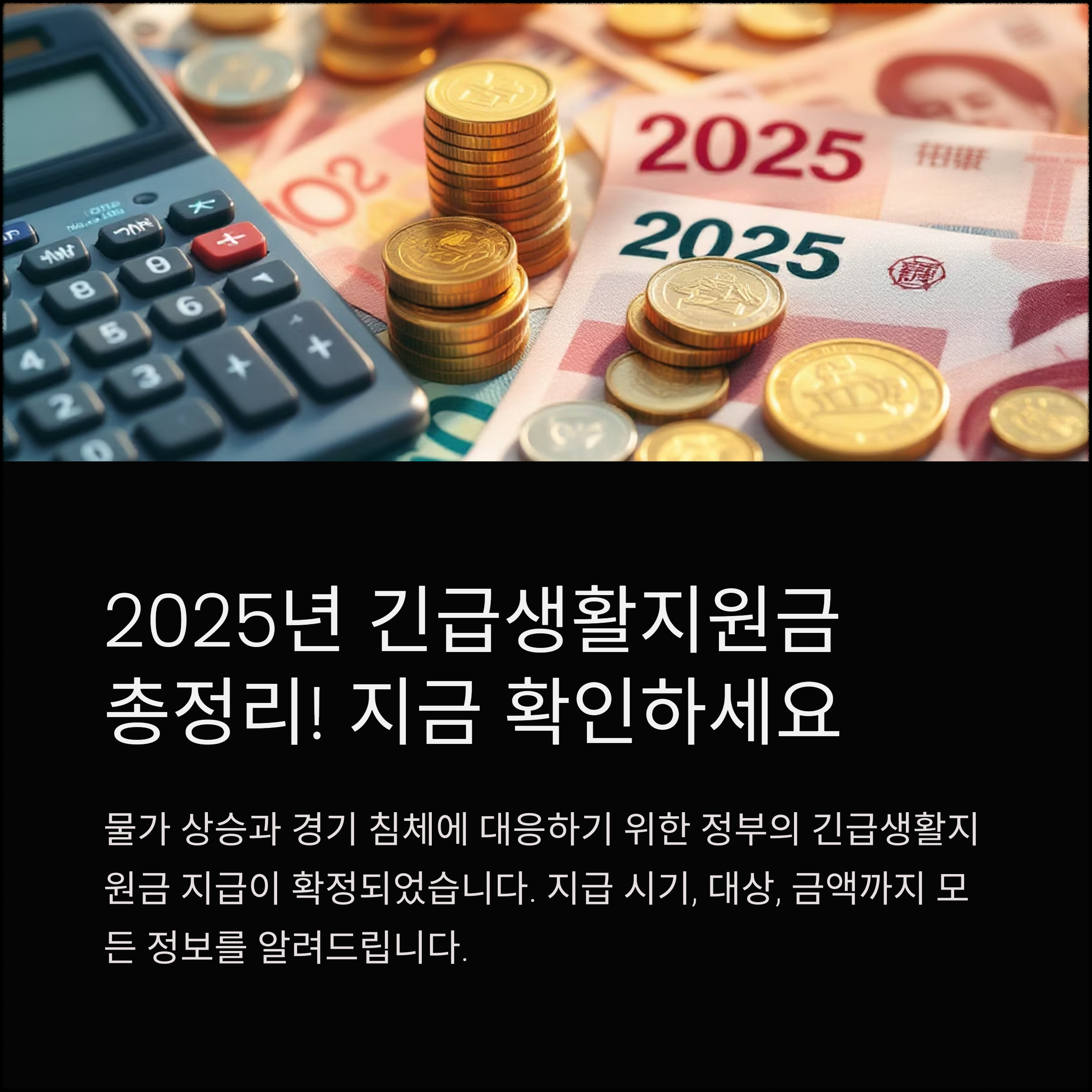 2025년 긴급생활지원금은 고물가, 고금리로 인해 생계에 어려움을 겪는 저소득층을 지원하기 위한 제도입니다.