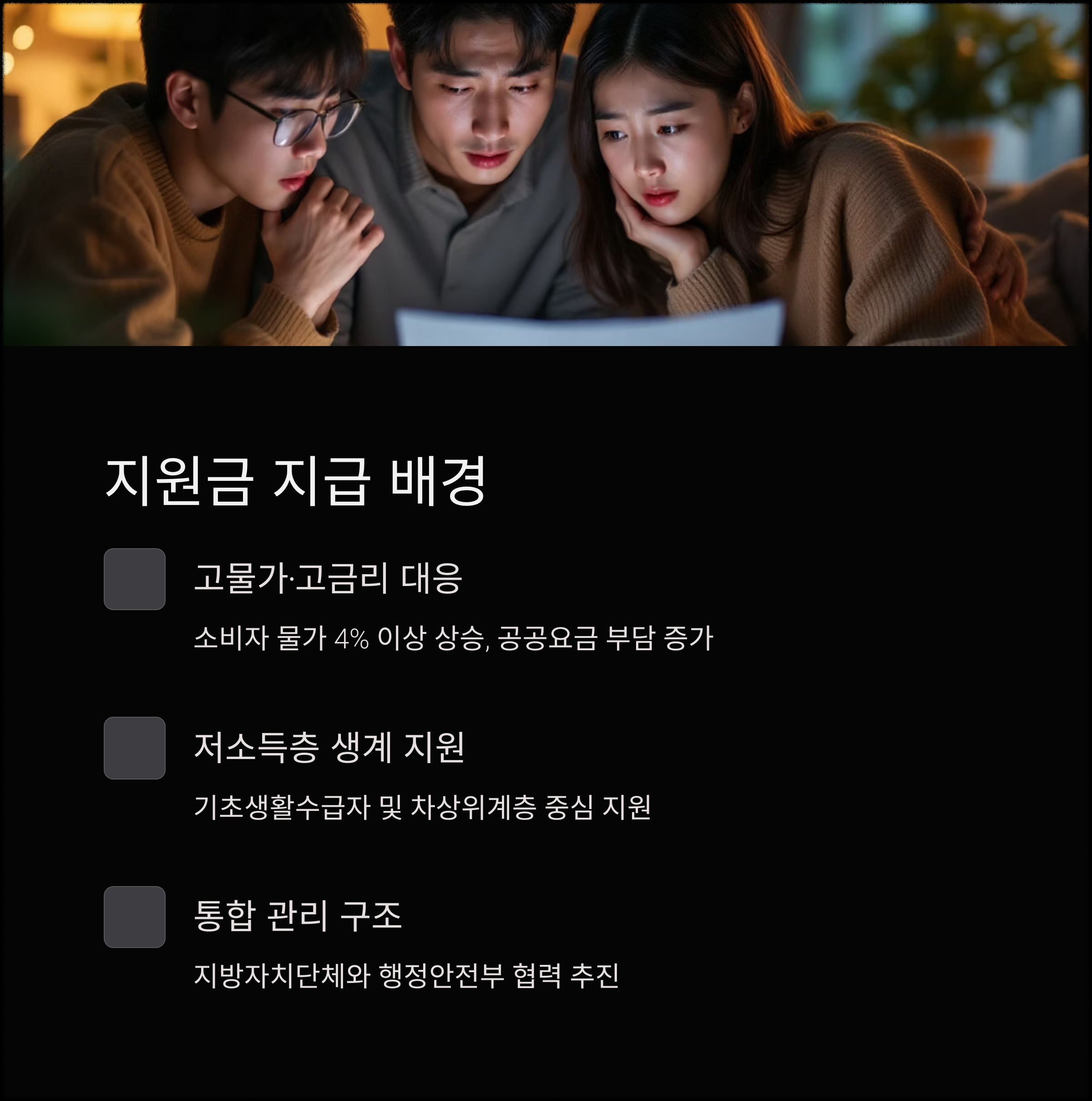 지원 대상과 금액이 명확하게 정해진 만큼, 본인의 대상 여부를 조기에 확인하고 지급 일정에 맞춰 준비하는 것이 핵심입니다.