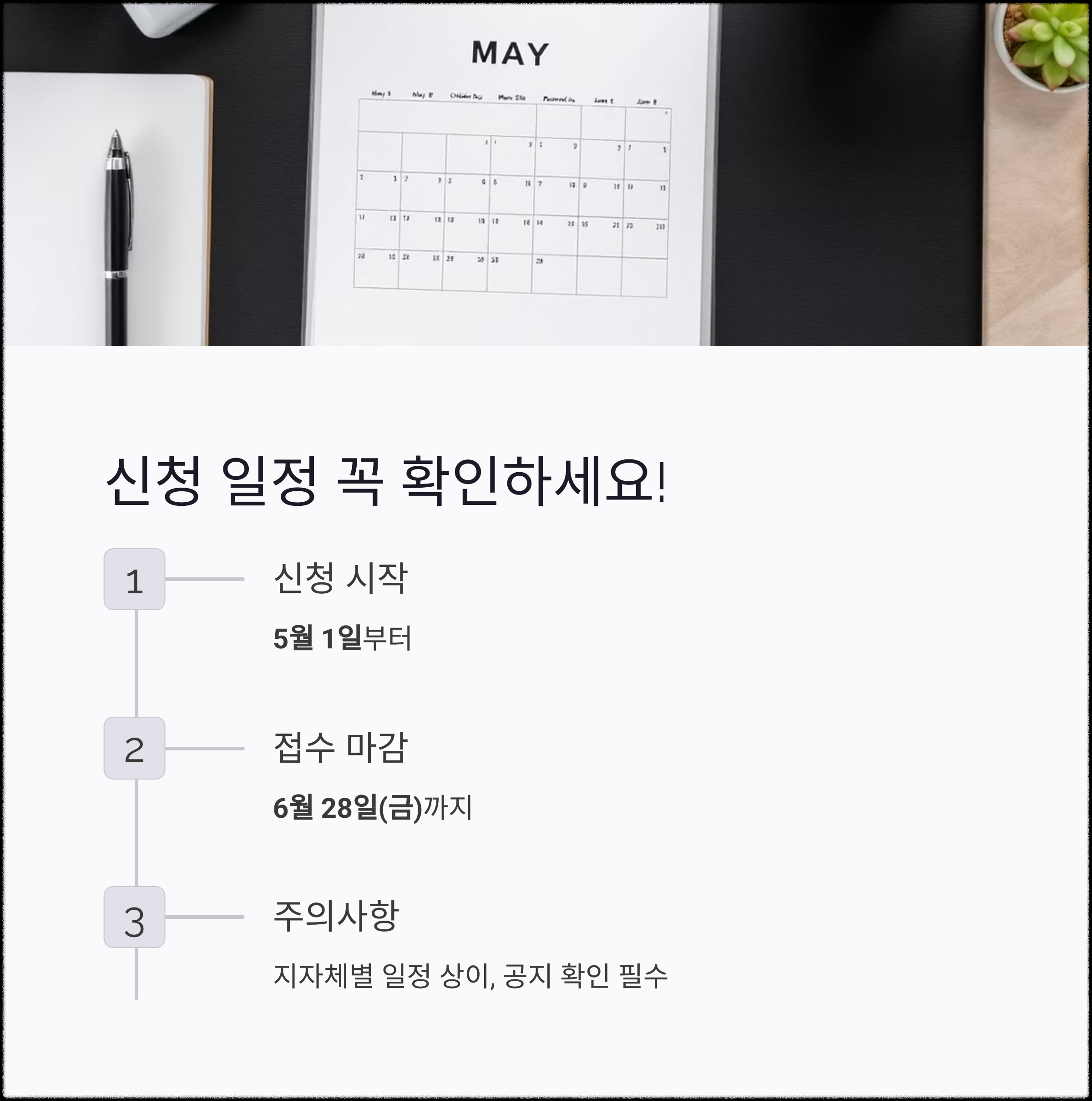 지자체에 따라 조기 마감 또는 신청 일정이 상이할 수 있으니,