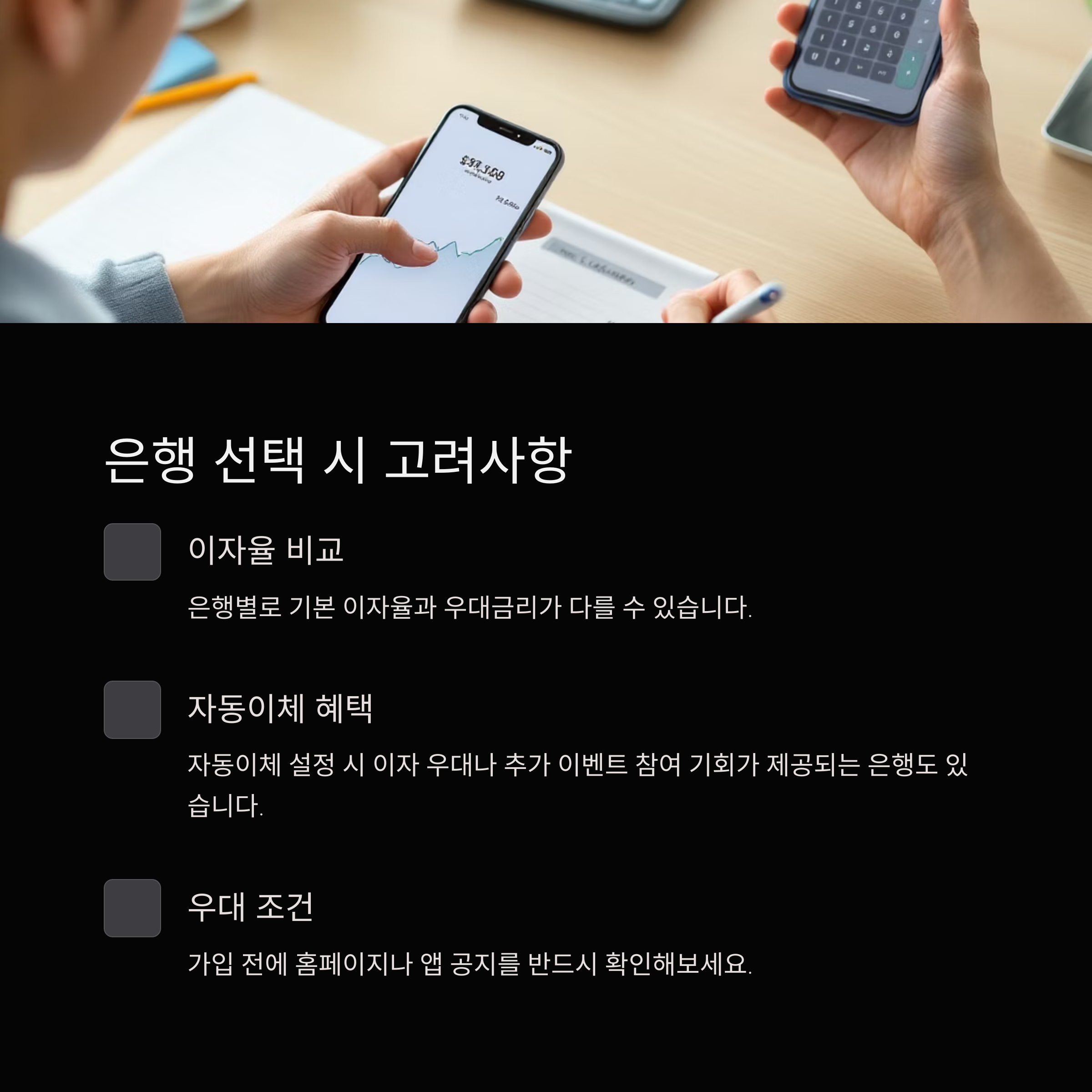 자동이체 설정 시 이자 우대나 추가 이벤트 참여 기회가 제공되는 은행도 있으니, 가입 전에 홈페이지나 앱 공지를 반드시 확인해보세요.