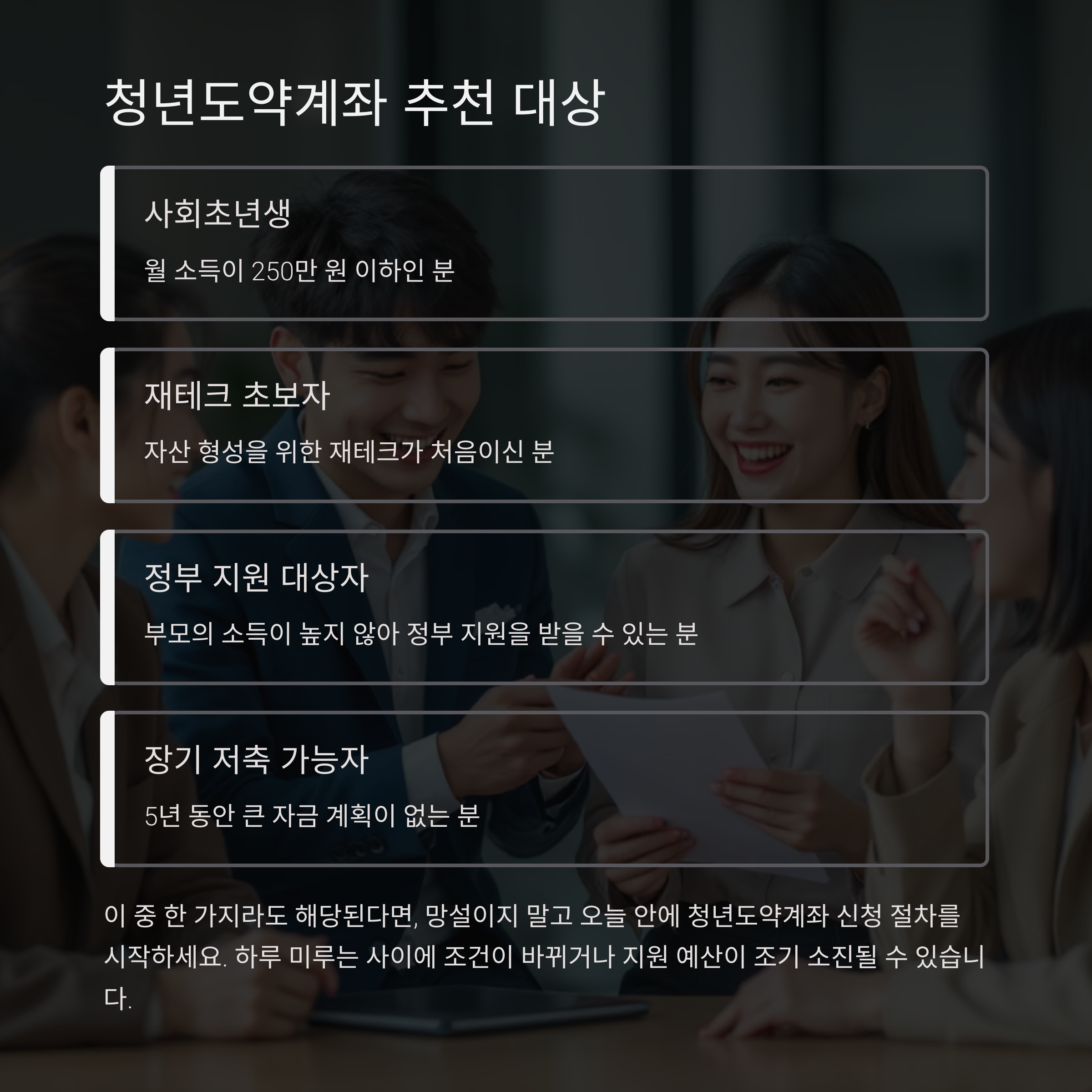 아래 조건에 해당하는 분들은 청년도약계좌 신청을 꼭 고려해보세요.