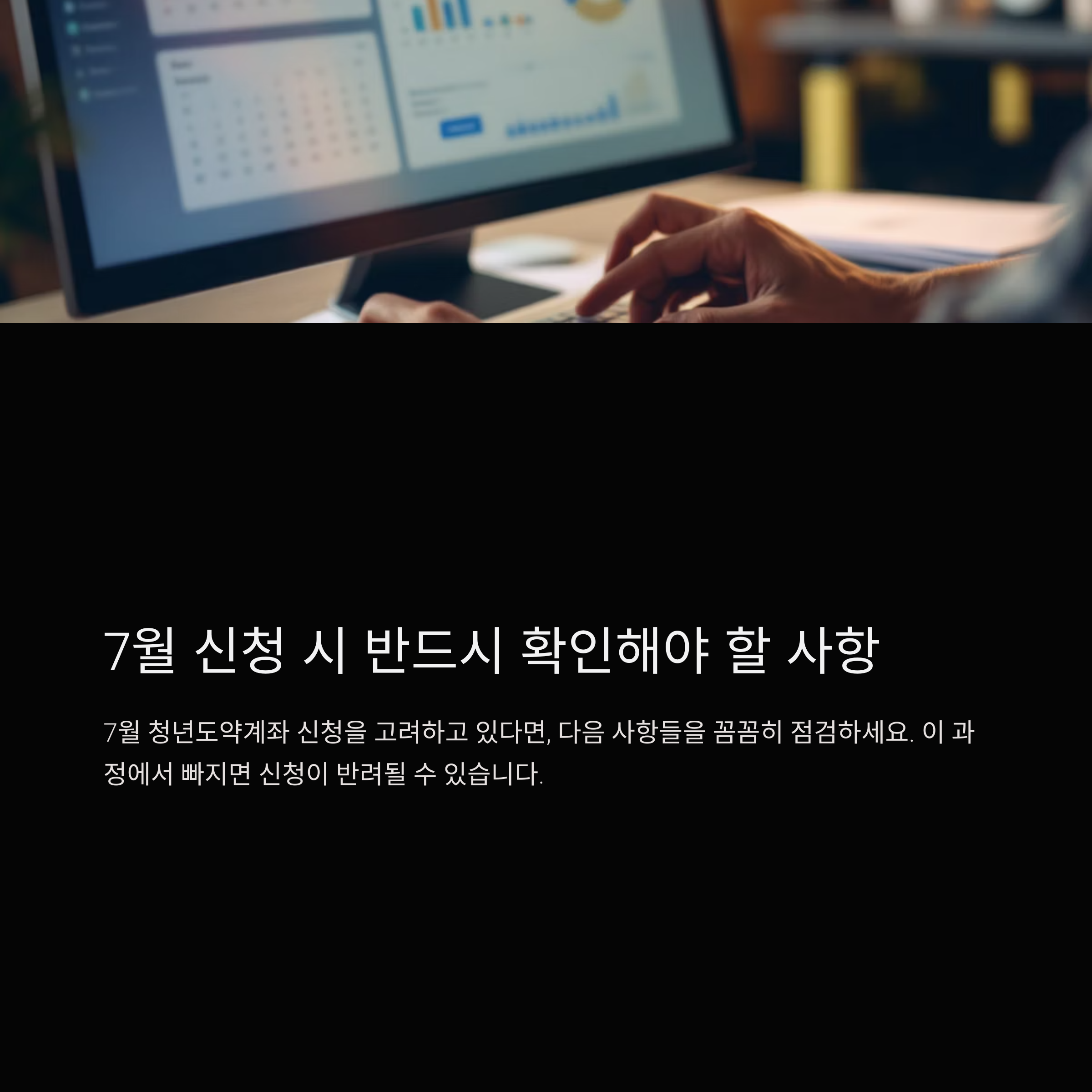 7월 청년도약계좌 신청을 고려하고 있다면, 다음 사항들을 꼼꼼히 점검하세요. 이 과정에서 빠지면 신청이 반려될 수 있습니다.