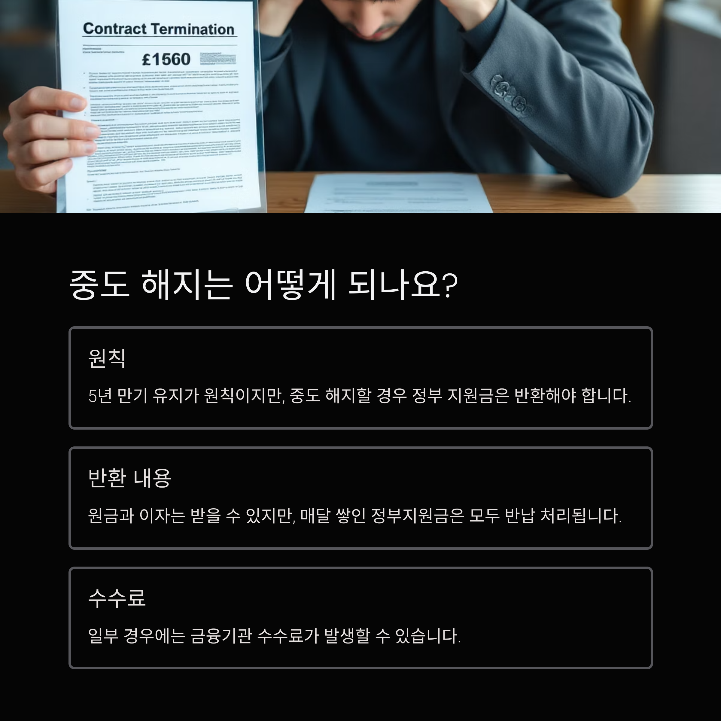 5년 만기 유지가 원칙이지만, 중도 해지할 경우 정부 지원금은 반환해야 합니다. 원금과 이자는 받을 수 있지만, 매달 쌓인 정부지원금은 모두 반납 처리되며, 일부 경우에는 금융기관 수수료가 발생할 수 있습니다.